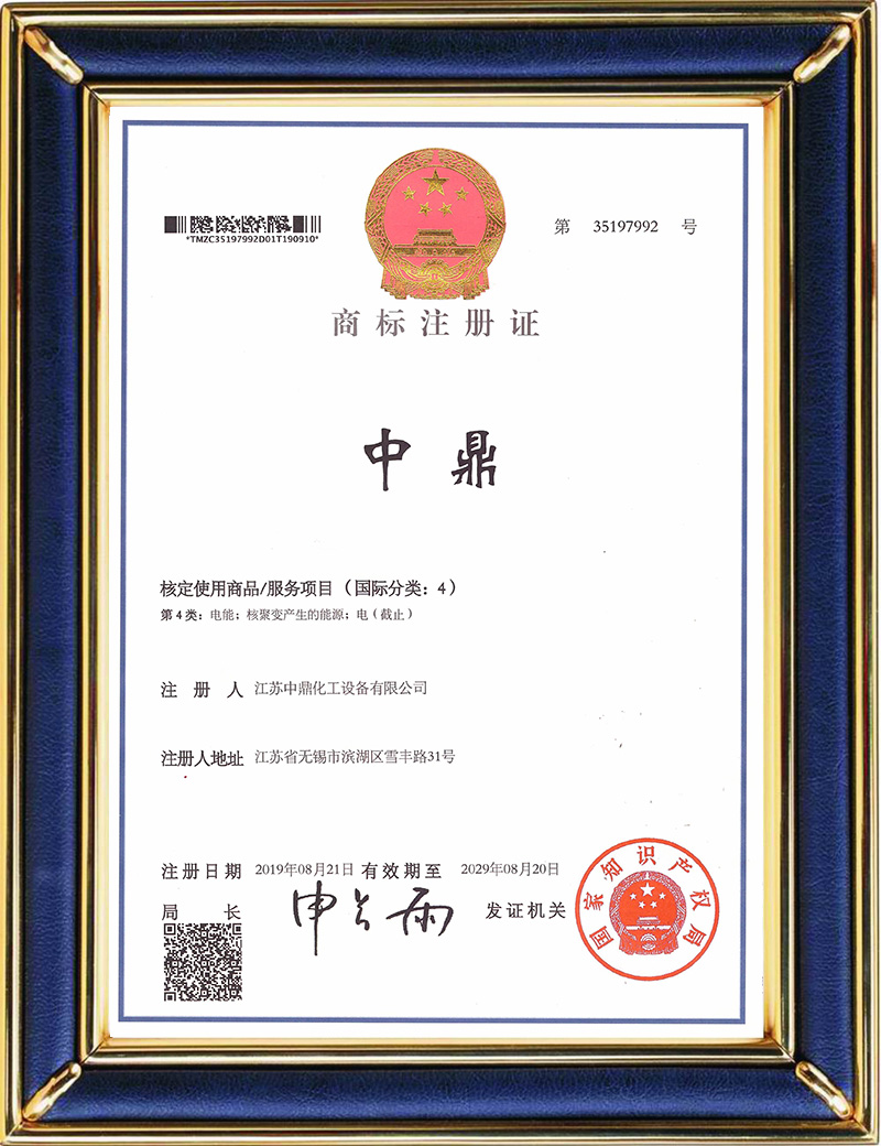 中鼎注冊商標證(第4類)