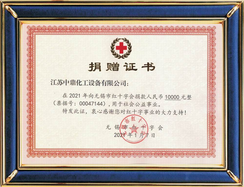 無錫紅十字會捐贈證書