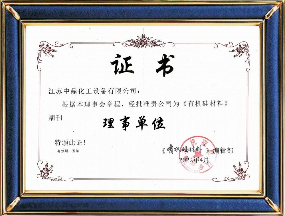 有機硅材料期刊理事單位證書