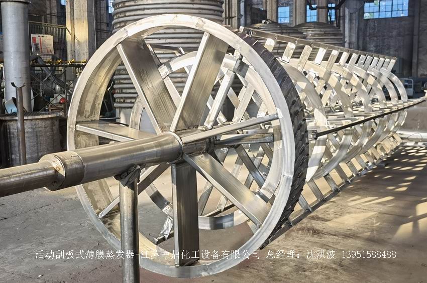 它由一個或多個帶夾套加熱的圓筒體及筒內旋轉的刮膜器組成。刮膜器將進料連續地在加熱面刮成厚薄均勻的液膜并向下移動;在此過程中,低沸點的組份被蒸發,而殘留物從蒸發器底部排出。